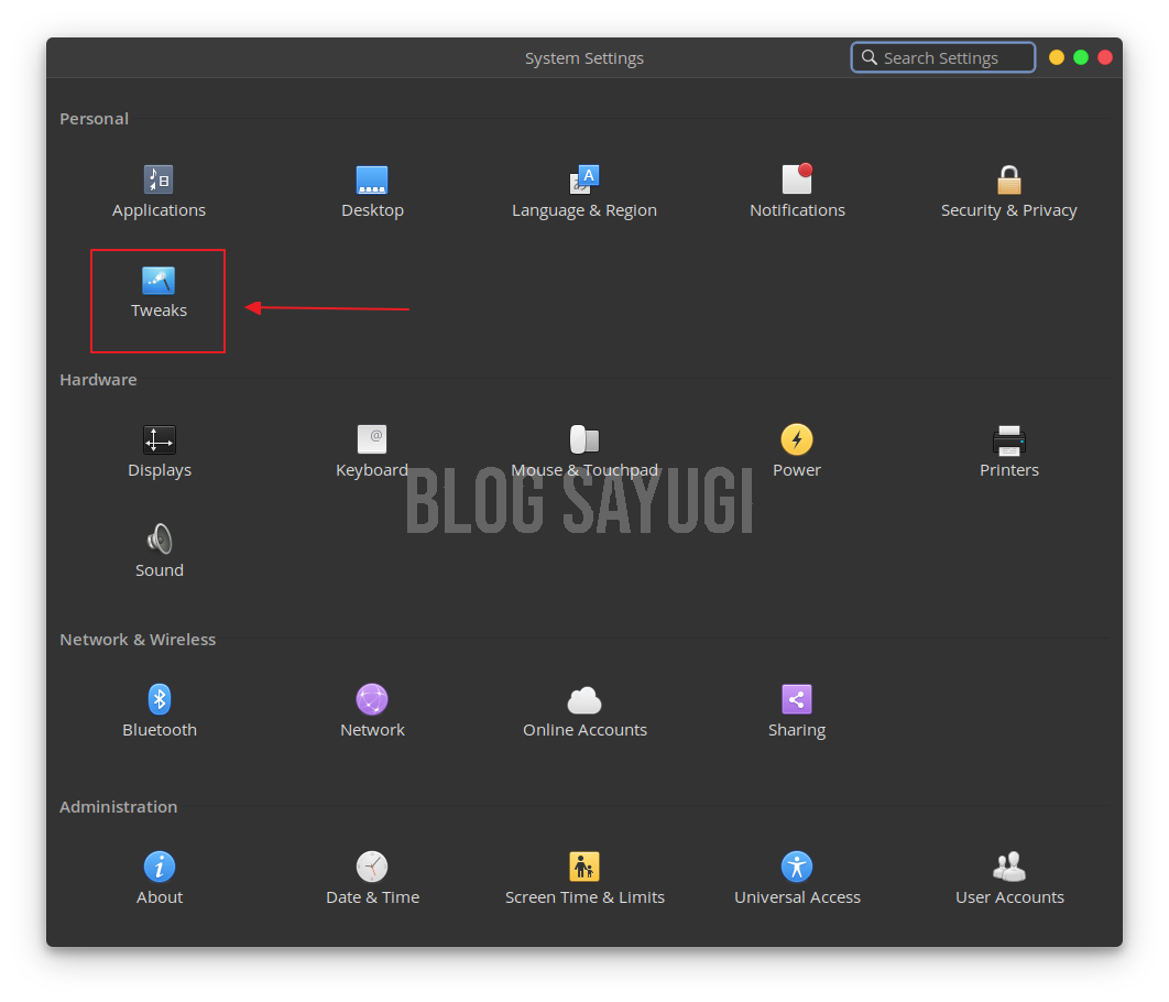 Langkah 1. Jika Elementary Tweak sudah kamu install, silahkan kamu buka melalui halaman Settings > Tweak.